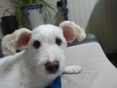아줌마가 강아지를 한 마리 한 마리.. 모두 꺼내어 보니 이제 겨우 눈을 뜨기 시작한 지 얼마 안 되는 꼬물꼬물 강아지가 9마리, 6남 3녀 였대요. 알록달록 강아지 속에서 오직 한 마리만 하얀 강아지였는데, 그 강아지가 바로 나 아롱이랍니다.