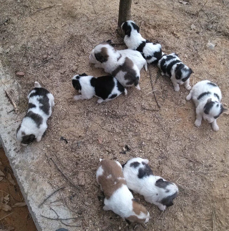 아줌마의 친정어머니와 살던 2마리의 강아지(저 아롱이의 할머니, 엄마 강아지예요)가 2월 17일 할머니께서 돌아가신 후, 3월 중순쯤 아줌마의 친정집 뒷산에 구멍을 파고 그곳에 9마리의 강아지를 낳았대요.