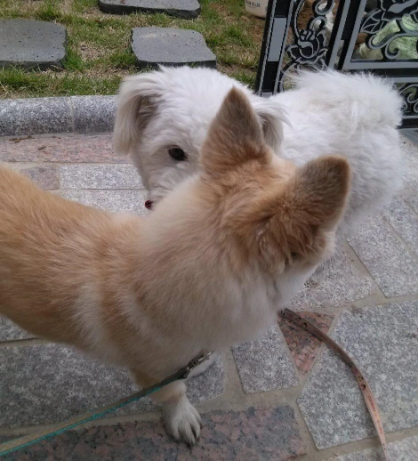 그날 이후로 담이가 산책을 나올 때면 아롱이 집을 들렀고, 저 아롱이가 산책을 나가면 담이네 집을 찾아가서 즐겁게 놀다가 집으로 돌아오고는 했습니다.