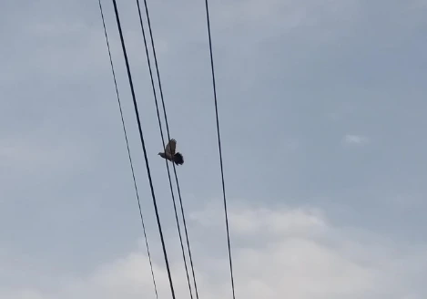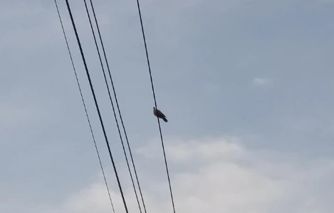 아침 산책길에 만난, 전기줄에 앉아 '구구 구구..' 울다가 하늘을 향해 날아가는 산비둘기