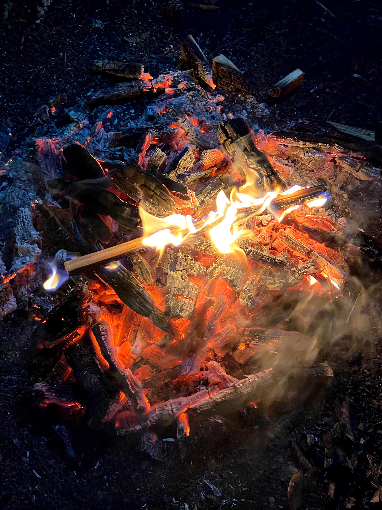 그러는 사이 날이 슬슬 어두워지기 시작했다. 한 것도 없는데 벌써 하루가 끝이 나는 모양새라고나 할까... 그래서 부랴부랴 저녁도 먹을 겸 캠핑의 하이라이트인 불멍을 준비하기로 했다.
