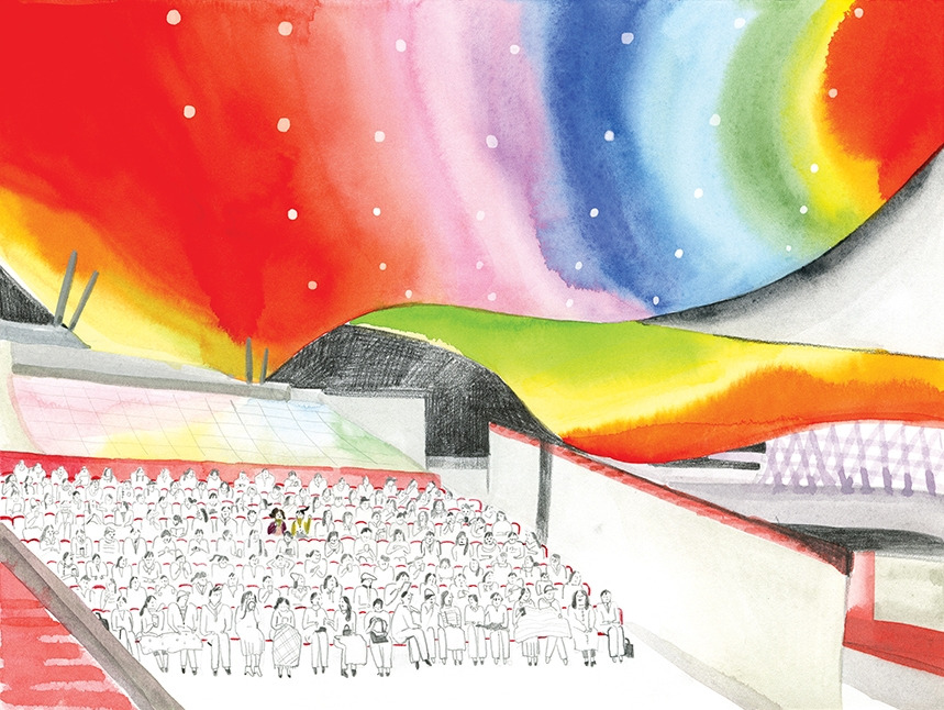 영화 상영 8분 전. 우리는 아슬아슬하게 영화의 전당에 도착했다. 우리가 영화 볼 장소는 야외극장인데, 야외극장 가는 길에도 레드카펫이 길게 펼쳐져 있었다. 레드카펫 밟으며 극장에 들어서니, 영화제에 왔다는 설렘과 묘한 감정이 나를 들뜨게 했다. 거기다 건물 지붕도 얼마나 화려한지, 알록달록 예쁜 무지갯빛 색상이 천장에서 파도처럼 넘실거리고 있었다. 극장은 평일 저녁인데도 불구하고 사람들이 많이 보였다. 나와 디랜다는 매의 눈으로 같이 앉을 수 있는 자리를 찾아 돌아다니기 시작했다. 따로 앉자고 말 나올 때쯤, 우린 운 좋게도 붙어있는 두 자리를 찾아서 앉을 수 있었다. 생각보다 늦게 도착했음에도 불구하고 자리도 시선도 모두 다 중앙이라 어찌나 좋았던지, 시간에 쫓겨 다녔어도 결국은 모든 게 다 잘 풀린 날이라 생각했다. 자리에 앉아 가방을 껴안고 스크린을 바라보고 있는데, 극장 불이 꺼진다. 안내방송이 흘러나오고 잠잠하다가 곧이어 영화 소리가 나오기 시작했다. 드디어 영화가 시작됐나 보다.