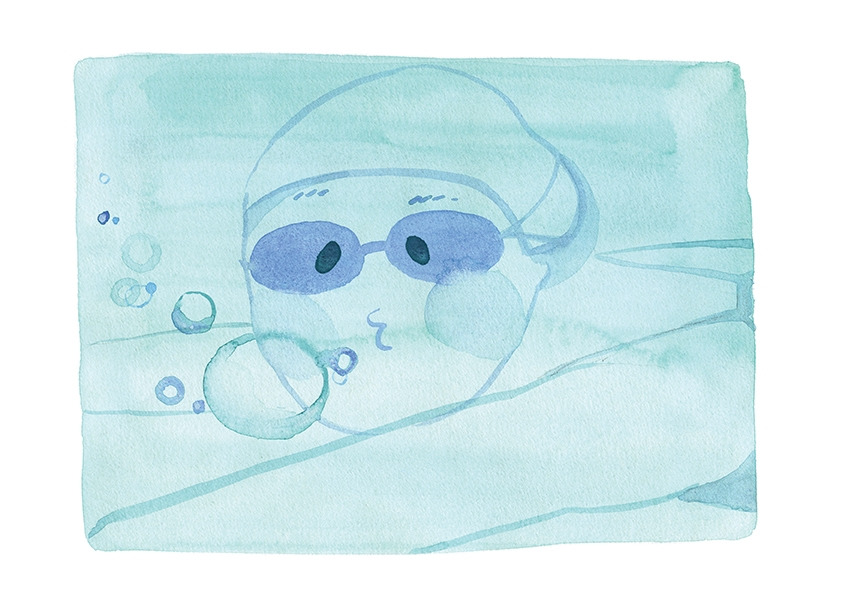 이때까지만 해도, 나는 충분히 물속으로 들어가서 스타트할 수 있을 거로 생각하고 있었다. 하지만 큰 오산이었다. 드디어 내 차례가 오고, 나는 자신만만한 표정으로 숨을 적당히 머금고 물속으로 들어가려 살짝 점프했다. 머릿속에서는 이미 점프하면서 무릎을 구부려 접고 엉덩이를 뒤로 빼서 다리를 벽에 닿은 다음, 팔을 앞으로 쭉 펴면서, 유선형을 만들 수 있을 거로 생각했는데. 생각과 달리 내 몸은 전혀 엉뚱한 방향을 향해있었다. 물속 중간까지 가라앉지 못하고 등과 엉덩이가 동동 수면 위로 떠 있던 것이다. 그때의 당혹감이란... 드라마나 영화에서 본 것처럼 순간적으로 시간이 멈춘 것만 같았다. 왜 가라앉질 못하는지. 머리도 마음도 모두 이해되지 않았다.