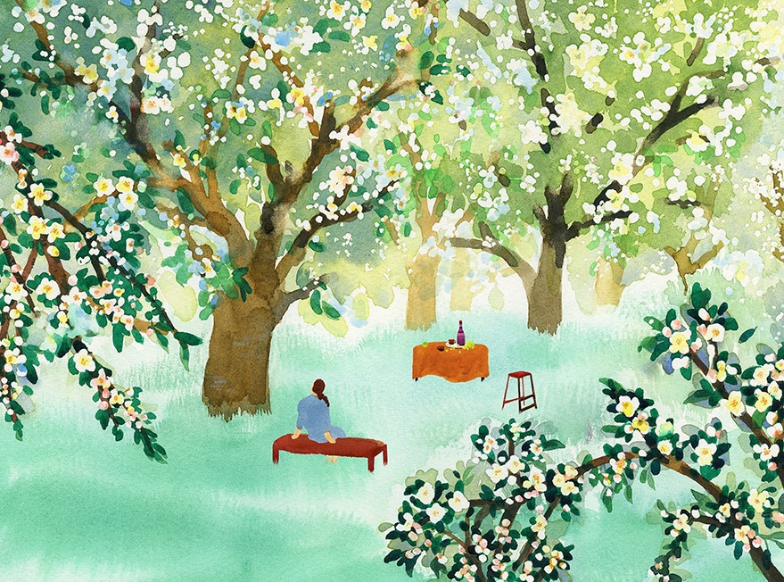 사과나무 아래에서 여유롭게 보내는 하루.