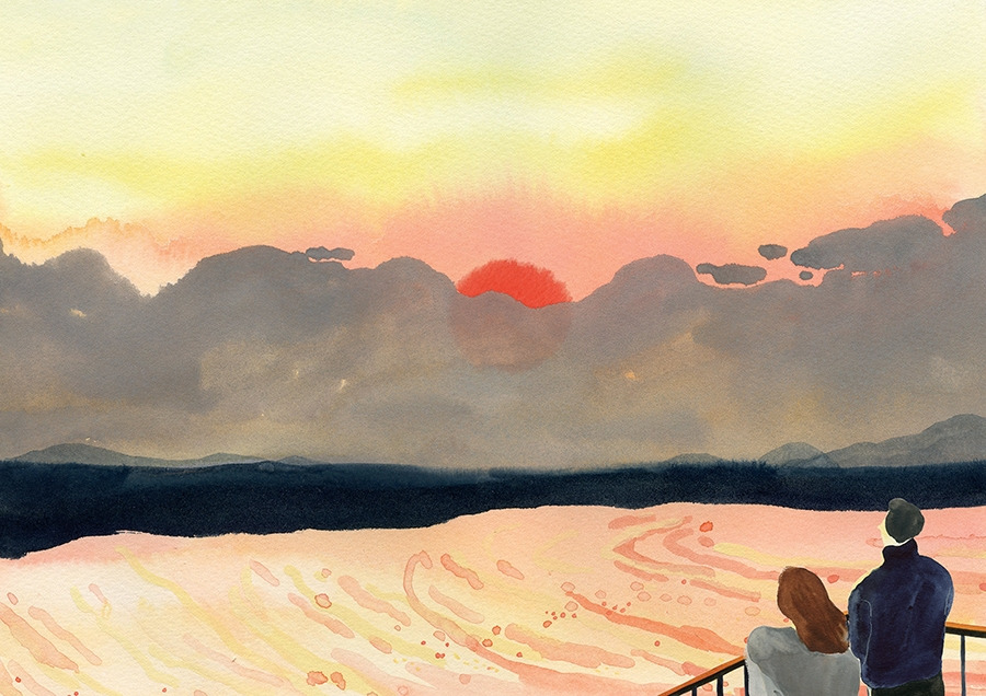 해가 구름에 가려져 있어도, 붉게 물든 하늘이 너무 예쁘다. :)