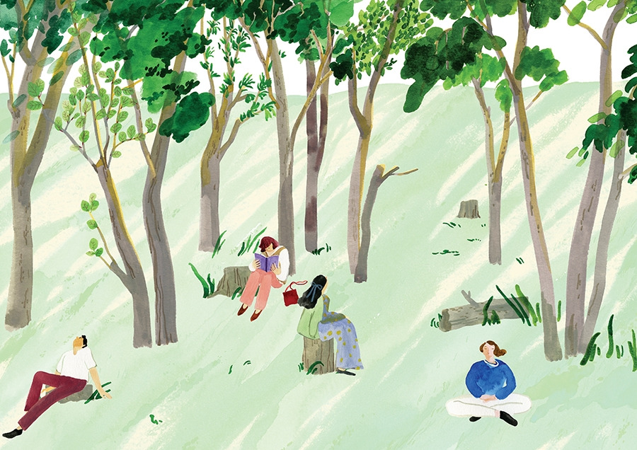 아무 말 없이 홀로 사색을 즐기는 사람들.