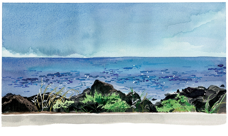울트라마린과 푸르시안블루 색상 그 어디쯤, 깊고 맑은 푸른 색상이 바다를 덮은 채로, 파도 따라 일렁이고 있었다. 강원도 바다와는 또 다른 느낌. 색상이 짙은데도 어떻게나 이리 맑고 쨍하게 보일 수 있는지...신기함에 한참을 멍하니 바라보았다.