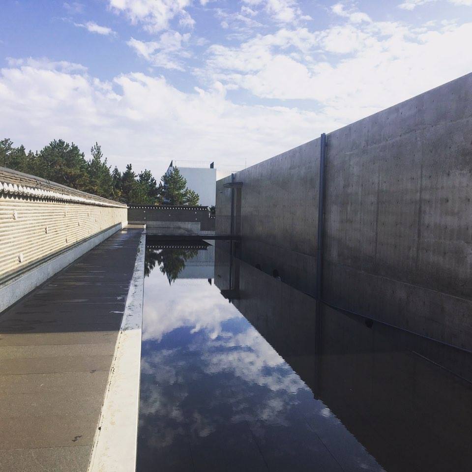 안도 다다오 관련 책들에서 본태 박물관을 다루지 않아 정보가 없었지만 다른 안도의 건축에서의 특징들이 고스란히 담겨 있다. 그의 시그니처인 노출 콘크리트, 자연광을 통한 빛과 그림자는 아름답다. 박물관은 후기 불교미술부터 현대미술관을 비롯한 5관까지 있다. 모든 전시관을 이동할 때마다 밖으로 나와야하므로 굉장히 불편하다. 그의 작품 스미요시 나가야에서 화장실을 갈때 비를 맞으면서 가야하는 불편함이 있는데, 마침 내가 방문한 날에 비가 열심히 내렸다. 바로 그 자연과 하나되는 불편함을 신발을 흠뻑젖어가면서 온몸으로 체험했다. 현대미술을 전시한 2관은 신발을 벗고 들어가야한다. 주택구조의 체험으로 관람객들을 제어한다.