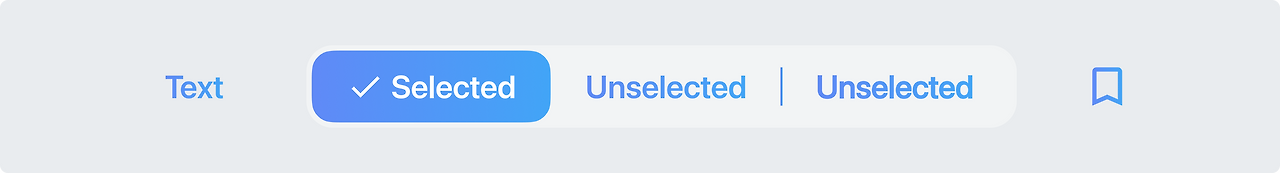 세그먼트 버튼 : 단일 아이콘 버튼보다 시각적 강조가 더 크며, 여러 개의 관련된 선택지를 나열할 때 사용됩니다.
