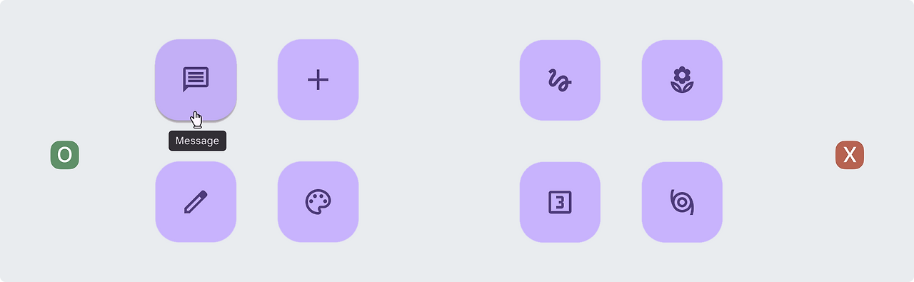 아이콘은 버튼의 동작을 시각적으로 전달합니다. 그 의미는 명확하고 모호하지 않아야 합니다.