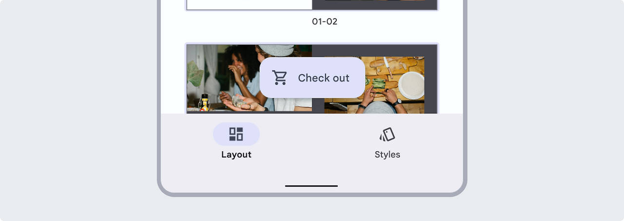 소형 FAB은 보조적이고 지원적인 작업에 사용되거나 컴팩트한 창 크기에서 기본 FAB 대신 사용됩니다. 하나 이상의 작은 FAB를 기본 FAB 또는 확장형 FAB과 함께 사용할 수 있습니다. 그러나 한 화면에 여러 개의 확장형 FAB을 사용하면 시각적 계층구조를 방해하므로 사용하면 안 됩니다.