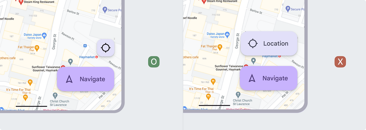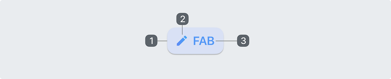 표준 FAB과 달리 확장형 FAB에는 아이콘이 필요하지 않습니다. 확장형 FAB에는 텍스트 레이블이 없는 아이콘이 있을 수 없습니다.
