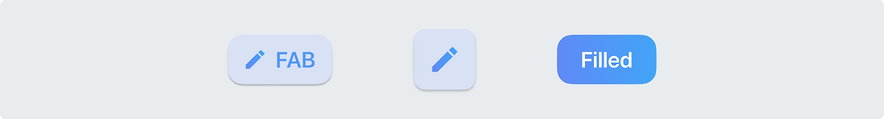 확장형 FAB : 확장형 FAB는 더 넓은 형식과 텍스트 라벨을 포함하여 일반 FAB보다 시각적으로 더 두드러집니다. 주로 일반 FAB이 너무 작아 보일 수 있는 큰 화면에서 사용됩니다.
