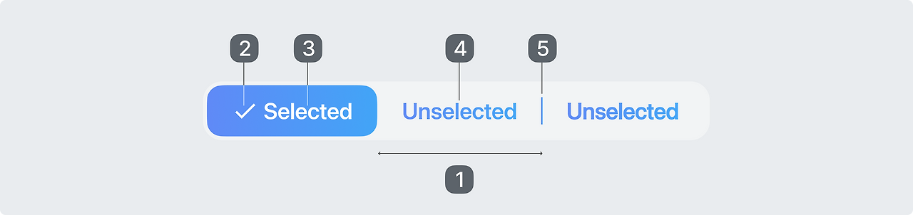레이블 텍스트는 짧고 간결해야 합니다. 텍스트가 세그먼트에 비해 너무 길다면 아이콘만 사용하는 것을 고려할 수 있습니다.