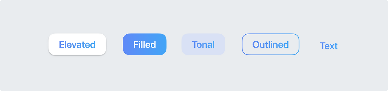 버튼(Button)은 사용자가 탭 하여 특정한 작업이나 액션을 실행할 수 있도록 하는 컴포넌트입니다. 다음과 같은 다양한 버튼 유형을 사용하여 사용자의 주의를 끌 수 있습니다. 본 글에서는 종류별 버튼의 사용방법에 대해 알아보도록 하겠습니다.