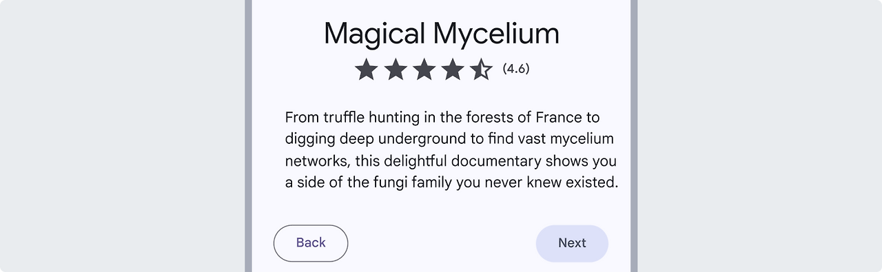 강조 버튼 : 강조 버튼은 대비되는 표면 색상 덕분에 FAB 다음으로 가장 눈에 띄는 버튼입니다. 주로 흐름에서 최종적인 행동이나 진행을 막고 있는 요소를 해제하는 데 사용됩니다.