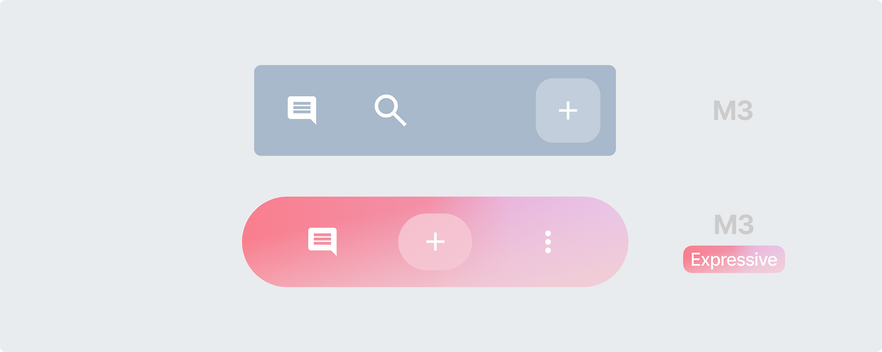 Google M3의 앱 바는 상단 앱 바와 하단 앱 바 두 가지 종류가 있었습니다. 그러나 Expressive 이후 하단 앱 바가 사라지고 여러 형태의 상단 앱 바만 남았습니다. 왜 상단 앱 바만 남긴 것일까요?