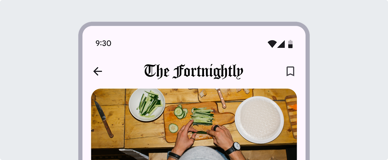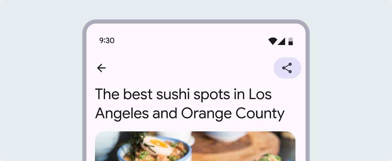 앱 바에 포함된 정보와 작업은 해당 페이지에 특화된 맥락 기반이어야 하지만, 검색이나 알림처럼 글로벌한 제품 제어 요소도 함께 포함될 수 있습니다. 예를 들어 페이지 탐색, 헤드라인, 이미지, 1~2개의 핵심 작업 등이 포함될 수 있습니다.