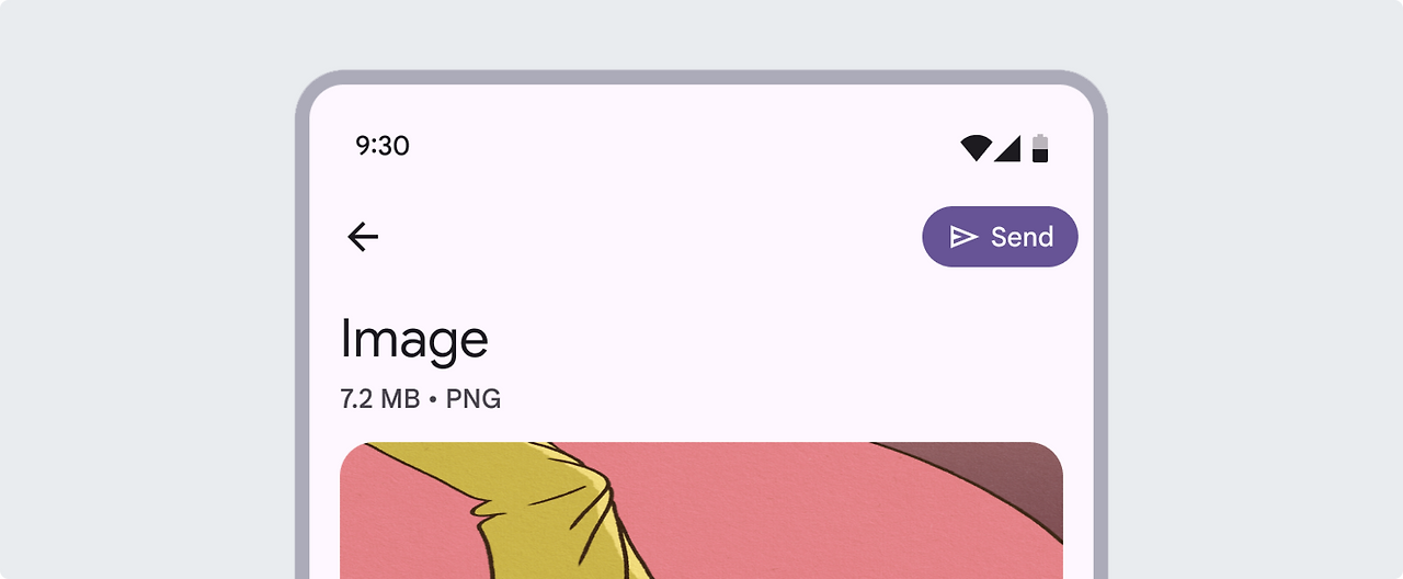 앱 바에는 작업 버튼을 하나만 배치하고, 꼭 필요할 경우에만 두 개까지 허용해야 합니다. 주요 작업은 페이지 전체를 변경하거나 종료하는 동작이어야 하며, 예를 들면 ‘보내기’, ‘저장’, ‘편집’ 등이 있습니다.