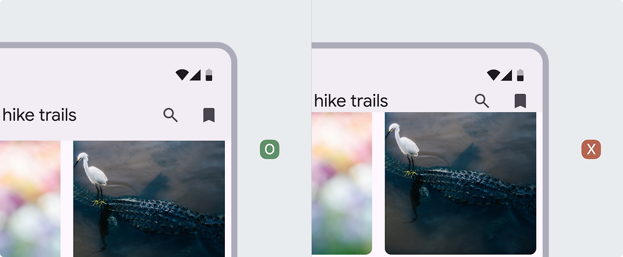 ❌ 기본 높이보다 낮게 설정하지 않습니다. 앱 바의 높이를 줄이면 콘텐츠의 인지성과 접근성이 떨어질 수 있습니다.