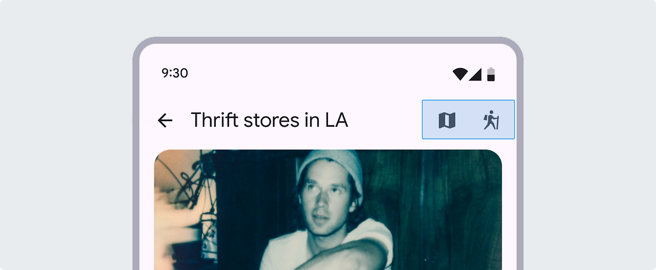 검색 앱 바에서는 아바타와 함께 두 개 이상의 후행 아이콘 버튼을 사용하지 않아야 합니다. 작업이 더 필요한 경우에는 툴 바(toolbar)에 배치하는 것이 적절합니다.