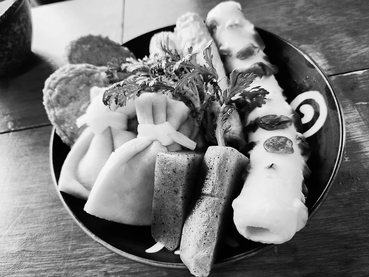 제법 쌀쌀한 날씨에 오랜 발걸음을 하지 못하고 가까운 오뎅 바에 들어가서 따뜻한 사케를 한 잔씩 마셨다. 일전에 한 허름하고 작은 식당의 추위 속에서 오들 거리며 먹었던 문어숙회를 떠올리며 키득거렸다. 그때랑 자리가 비슷하네. 찬바람 슬슬 맞으며 먹었던 문어숙회가 부들부들 맛있었는데. 문어숙회 이후로 그리 오랜 시간이 지나지 않았는데, 그새 많은 이야기들이 쌓여 있었다. 서울의 한낮 폭설 같은 것이다. 금세 두둑이 쌓였다가도, 딴청 잠시 피우고 보면 어느 샌지 제설되어 사라져 버리는. 너무 늦기 전에 이야기 눈사람을 빚어야 해. 곤약과 물떡을 추가해 먹으면서 근황 이야기를 줄기차게 나눴다.