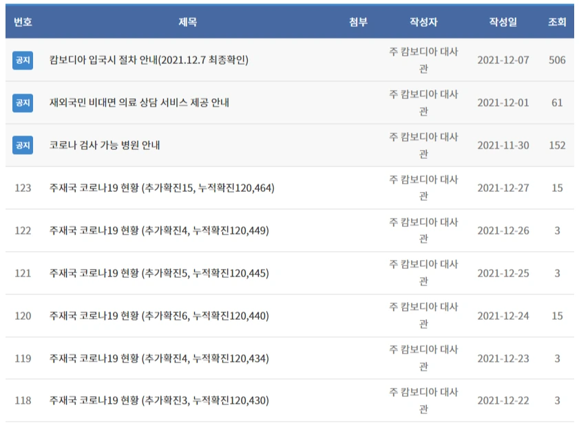 그러나 올해는 참 조용히도 이 한 해가 마무리되어 간다. 아마 타지 출장 생활 중이라 친구들이나 가족과 부대낄 수 없어서 더 고요히 느껴지는지도 모르겠지만 아직도 위세를 떨치고 있는 코로나19가 가장 큰 고요의 발원지일 것이다. 한국은 오미크론 변이나 계속 늘어나는 일일 확진자 수 때문에 시끄러운지도 모르겠다. 그렇지만 여기, 캄보디아는 매우 조용하기만 한데, 그도 그럴 것이 캄보디아의 일일 확진자 수는 12월 한 달 내내 30명을 넘어가지 않았다. 공식적인 발표에 의하면 그렇다.
