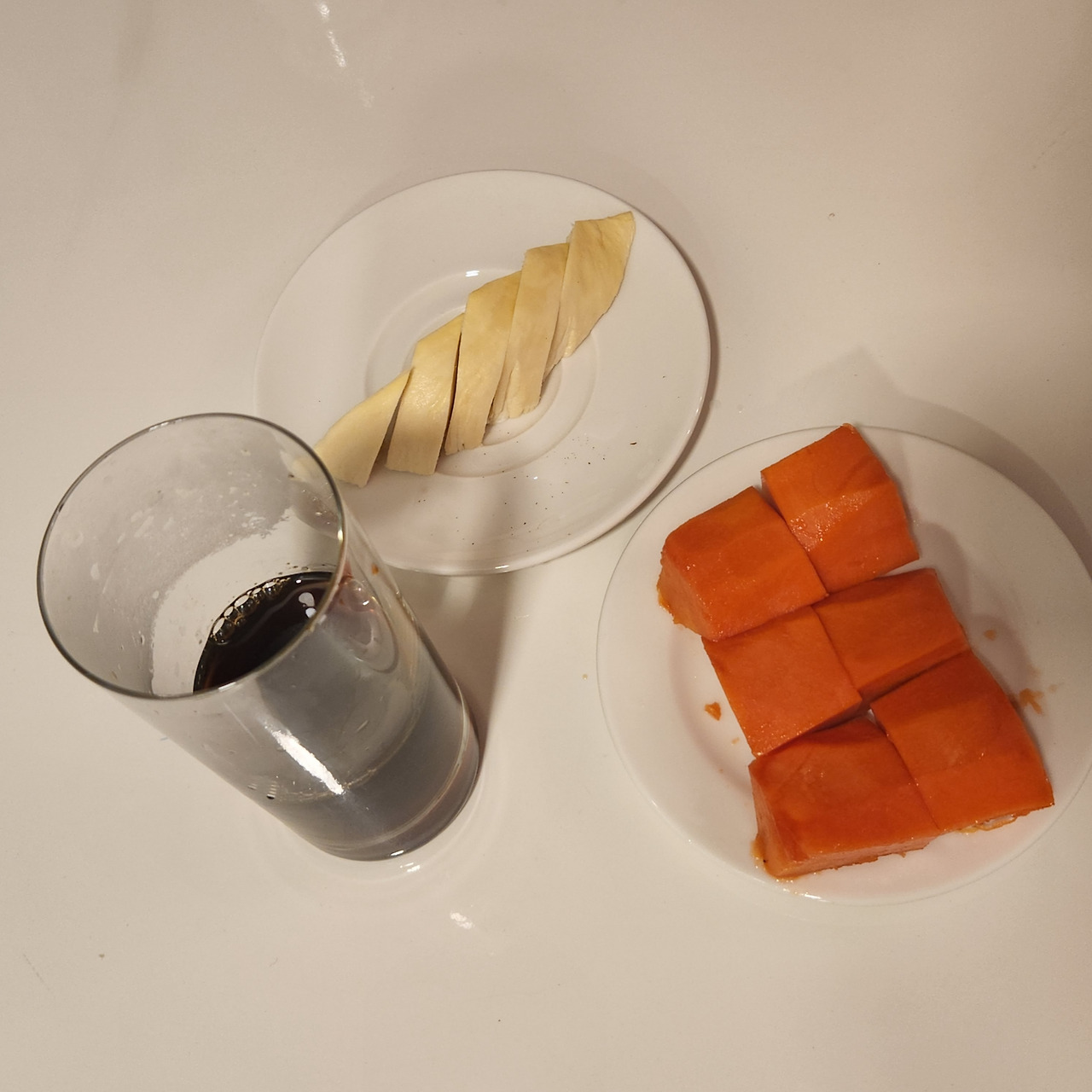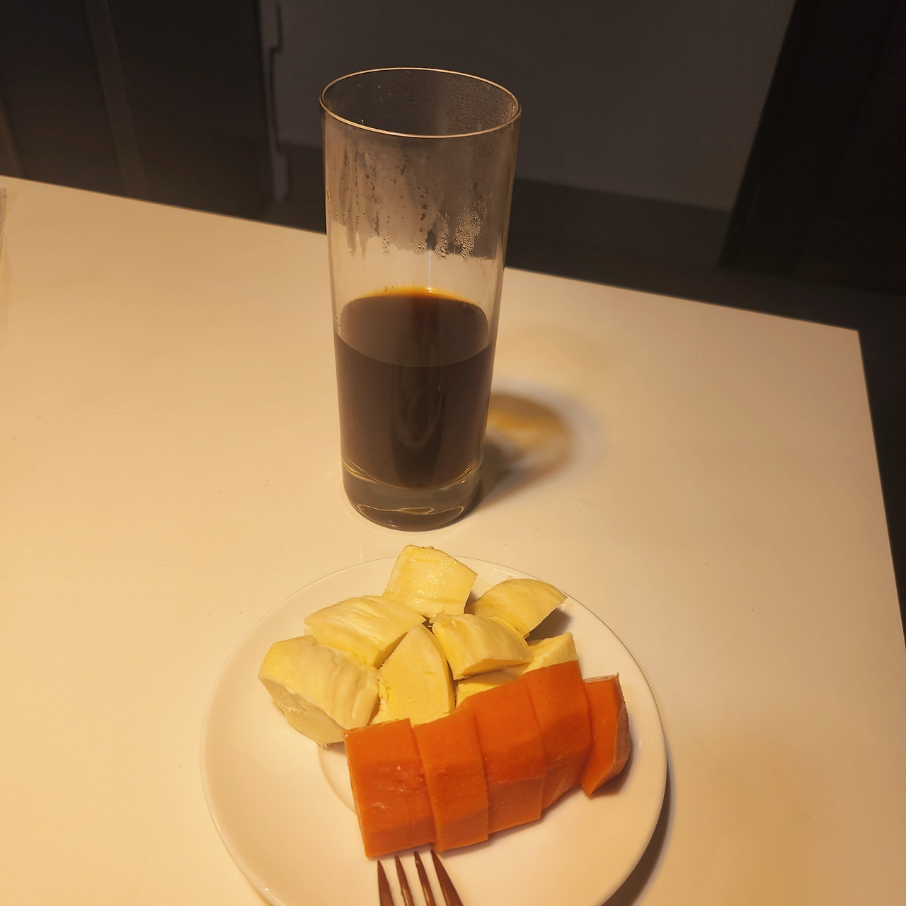 파파야는 내가 생각하기에 커피와 가장 잘 어울리는 과일이다. 실온에 내어두어 미적지근해진 파파야와 커피는 정말 완벽한 한 쌍이다. 미적지근한 커피와 파파야는 동남아시아의 어느 호텔을 가도 조식으로 만날 수 있으니, 잊지 말고 한 두 조각 덜어와 먹어보시기를. 게다가 파파야는 커피를 가리지도 않아서, 강배전이든 약배전이든 입속에서 스스럼없이 어우러진다. 심지어 카누나 맥심 블랙과도 잘 어울리는 파파야...