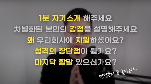 며칠 상상의 나래를 펼쳤을 뿐인데 나의 창의력은 금세 바닥나고 말았고, 현실적인 면접 질문들이 필요해졌다. 그래서 지난번 자기소개서를 쓸 때 참고했던 면접왕 이형이라는 유튜버의 영상을 다시 한번 참고했다. 그는 꼭 준비해야 할 질문으로 다섯 개를 뽑아 제시했다.