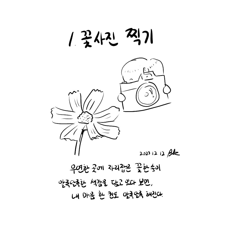 꽃은 봄에 피는 것이라는 인식이 강하다. 하지만 꽃은 여름과 가을, 심지어는 겨울에도 핀다. 우리 주변에는 항상 꽃이 있으나 현실에 치여 바삐 걸어가다 보면 그 자리에 꽃이 있다는 사실을 눈치채지 못한다. 그렇기에 여러 꽃이 피어있는 알록달록한 색감의 봄이 다가오기만을 기다리곤 한다.