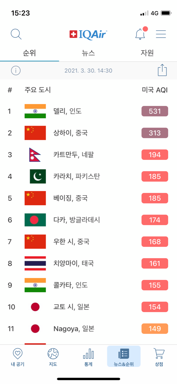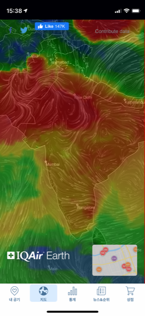 호기심에 핸드폰에 있는 AQI 앱을 켜봤더니 미세먼지 지수가 500을 훌쩍 넘어섰다. AQI 앱에 있는 지도를 열어보았더니 한반도 전체가 몇 개는 들어가고도 남을만한 인도 북부 지역 전체가 모두 짙은 적색으로 변해있었다. 이번에도 미세먼지 지수 300을 간신히(?) 넘어선 중국의 상하이를 제치고 한 번 더 인도가 세계 1등을 차지했다. '인도'가 다시 한번 '인도'한 것이다. 나도 모르게 낮은 한숨이 새어 나왔다.