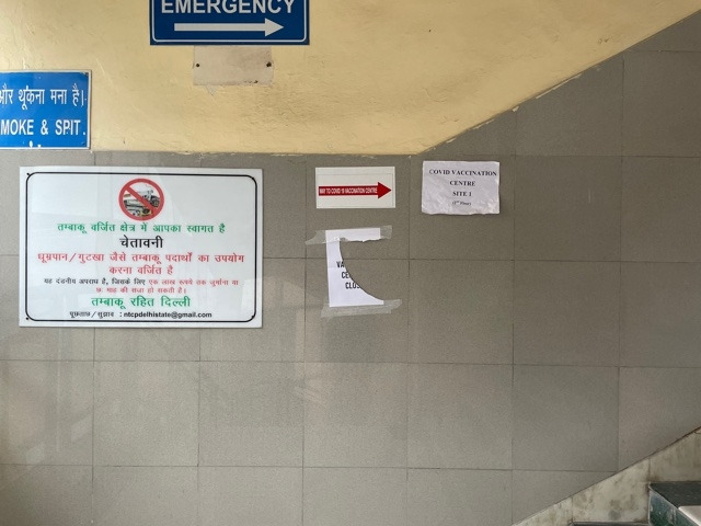 '침을 뱉지 마시오'라는 지극히 인도스러운 표지판 밑에 접종 센터로 가는 화살표가 붙어 있었고, 우리 부부는 어렵지 않게 접종센터에 도착했다.