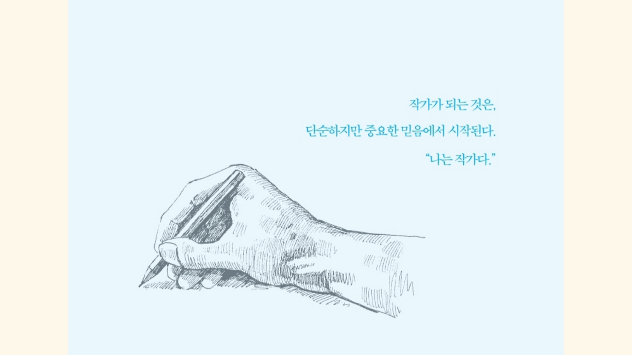 어제 <이제, 글쓰기>라는 책을 읽었어요. 이번 브런치 출간 프로젝트에 산티아고 순례길에서의 에피소드를 한번 내보려고 하거든요. “작가가 되는 것은 단순하지만 중요한 믿음에서 시작된다. 나는 작가다”라는 부분이 확 끌려서 읽게 되었어요.