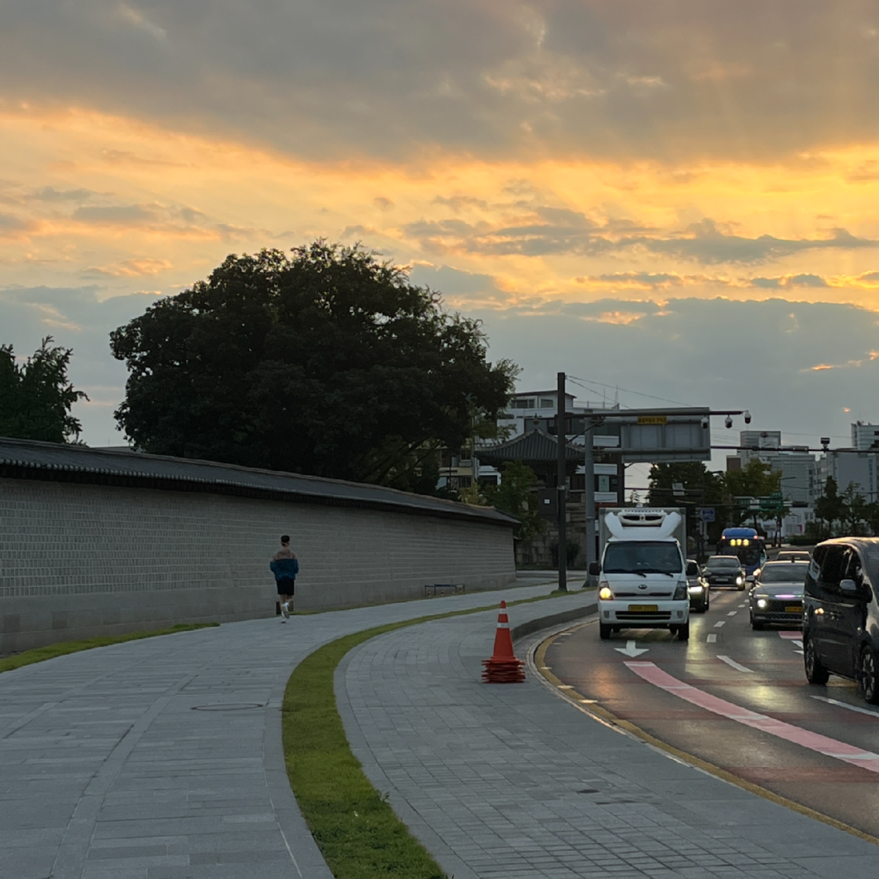 오늘은 에어팟도 끼지 않고, 애플워치를 보지 않으면서 달려봤습니다. 그렇게 달리니 제가 편안한지에 집중하면서 달릴 수 있었어요. 케이던스를 유지하면서 달리려고 할 때면 오히려 페이스가 들쭉날쭉하고, 더 힘든 느낌이었어요. 오늘은 다른 것에 신경을 안 쓰니 케이던스도, 페이스도 신경 쓰지 않으니, 제 몸에만 온전히 집중할 수 있었어요. 특히 에어팟을 끼지 않고 뛰니 저의 호흡과 발자국 소리를 들을 수 있었어요. 오늘의 러닝은 호흡도 편하고, 발자국 소리도 가벼웠답니다