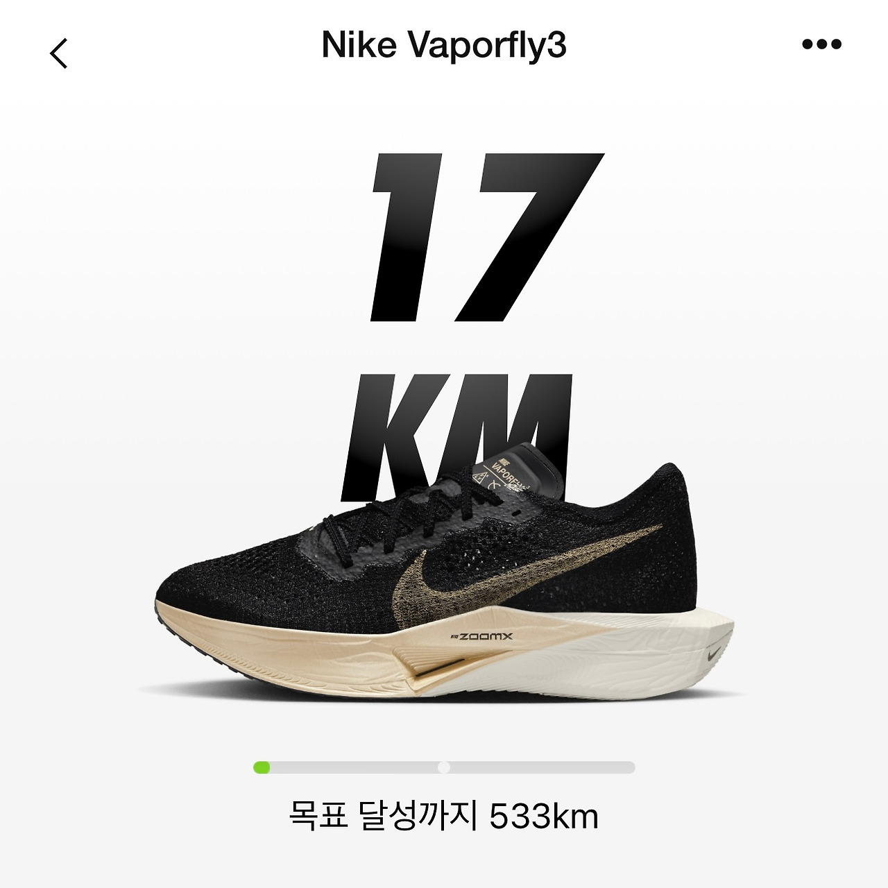 그리고 최근에 처음으로 카본화, '나이키 베이퍼 플라이3'를 구매했어요. 올해 11월 JTBC 풀코스 마라톤에 참여하는데, 이번에는 Sub4 를 달성해보고 싶어서 카본화의 힘을 빌려보기로 했거든요. 이제는 인터넷에서 러닝화를 구매할 때는 사이즈를 2개를 시킨답니다. 그리고 2개를 다 신어보고 하나는 반품을 해요. 예전에는 하나 사보고 안 맞으면 사이즈를 교환했는데, 한 번에 2개를 시키니 비교도 편하고 시간도 단축되더라고요.
