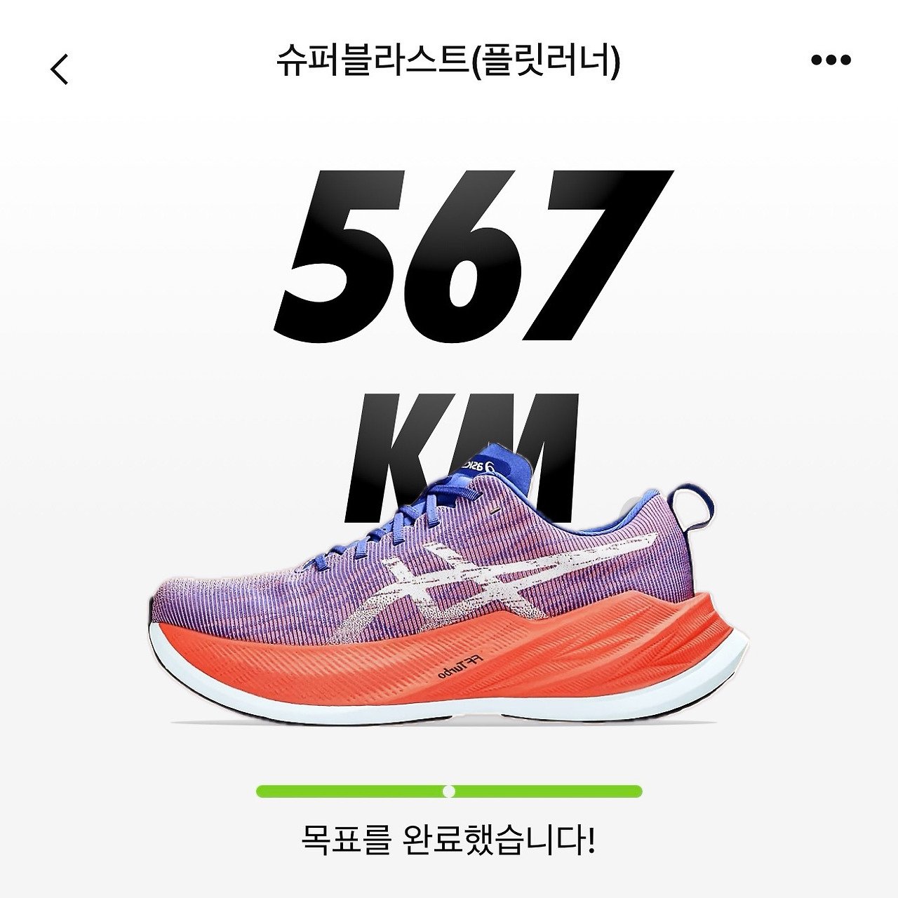 처음에는 그냥 러닝화도 아닌 운동화를 신고 달리다가, 러닝화를 인터넷에서 삽니다. 그러다 내 발에 잘 안 맞는 것 같다는 생각이 들어요. 내 발 사이즈에 잘 맞는 러닝화를 신으면 부상도 없고, 기록도 잘 나올 거라 생각해요. 그러면 일단은 매장에 가서 신발을 신어봐요. 그러다가 우연히 내 발의 사이즈를 정확하게 측정해 주고 신발도 추천해 주는 서비스가 있다는 걸 알게 되었어요. 유명한 곳이 플릿러너와 런너스클럽 두 군데가 있는데, 저는 플릿러너로 가서 발 사이즈를 정밀(?)하게 측정하고 아식스의 슈퍼블라스트를 추천받아 바로 구매했어요. 나이키 러닝클럽 앱에서 확인해 보니 슈퍼블라스트를 신고 567km를 달렸네요! 제 첫 풀코스 마라톤 완주 신발이기도 해요.