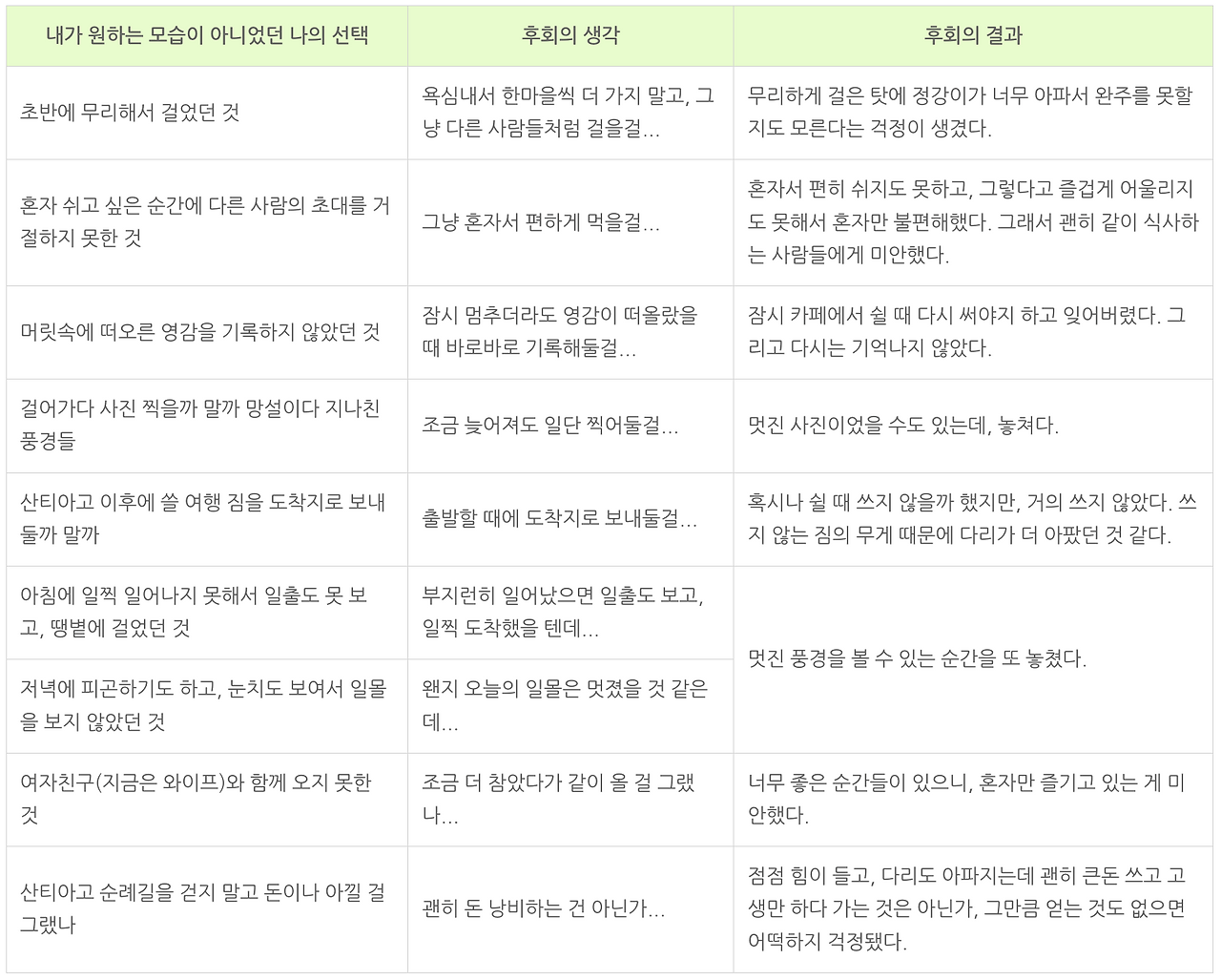 산티아고 순례길을 걸으면서 많은 후회의 순간들이 있었다.