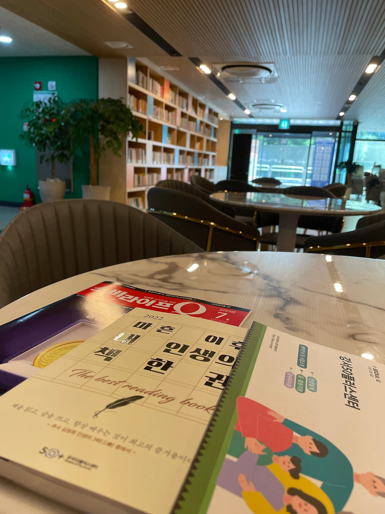 금융사기부터 노년기 금융가이드까지 품격있는 노년에 대한 이야기들로 오전 미팅을 꽉 채웠다. 조한종센터장께서 직접 챙겨주고 내려주고 정리해 준 다과와 커피는 공간의 쾌적함에 따스함까지 더한다. 무엇보다 센터의 입구를 꽉 채운 시니어 전문서적이 마음을 설레게하는 기억을 남긴다.