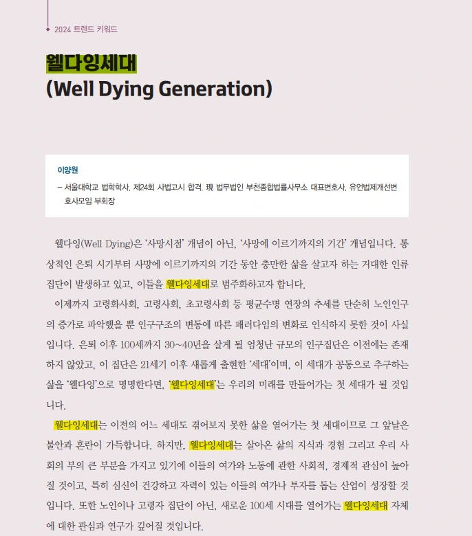 ‘웰다잉세대’ 시니어트렌드2024 기고글의 마지막 키워드다.