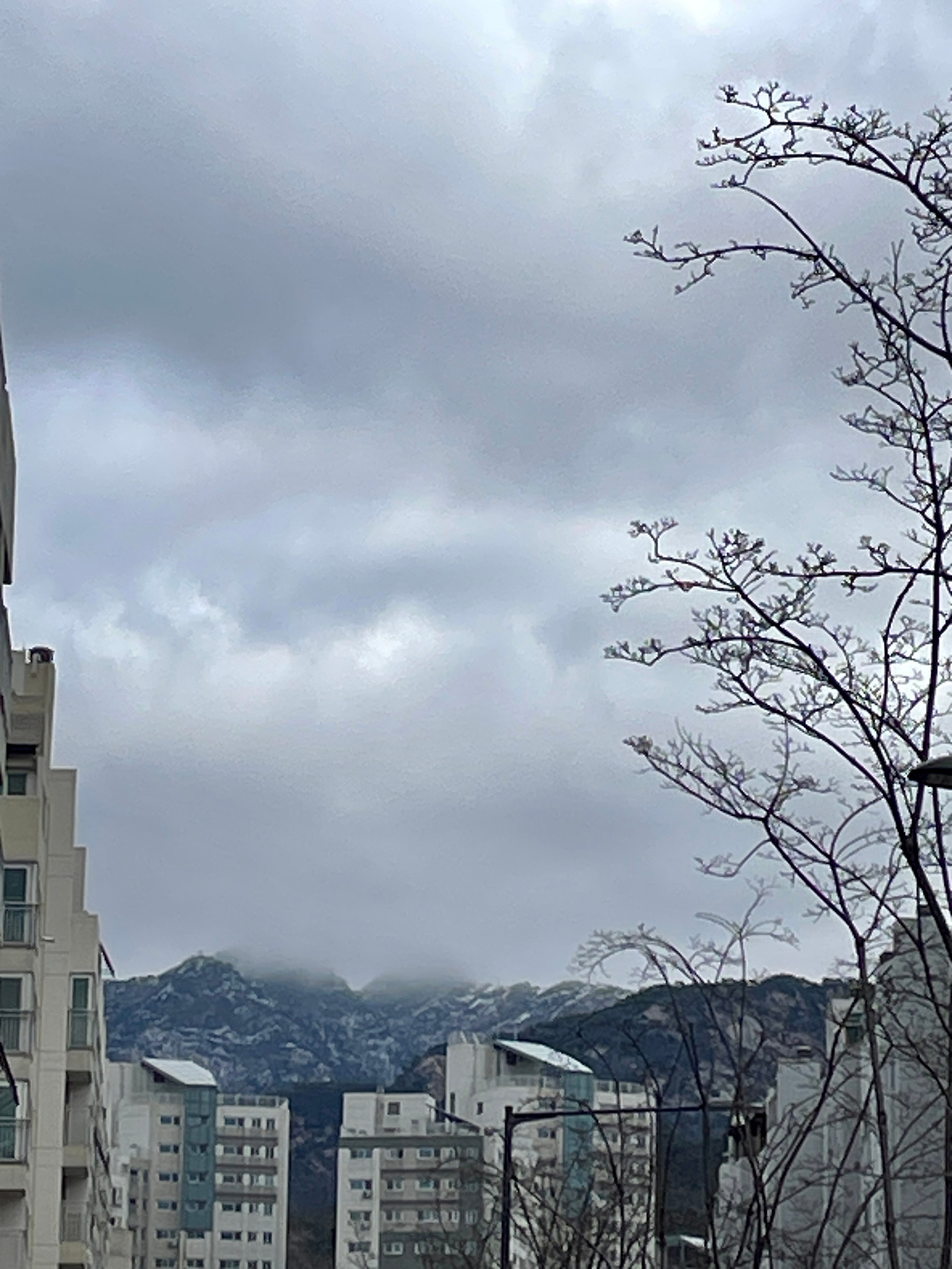 산을 향하니 ‘눈’이 덮혀 있다.