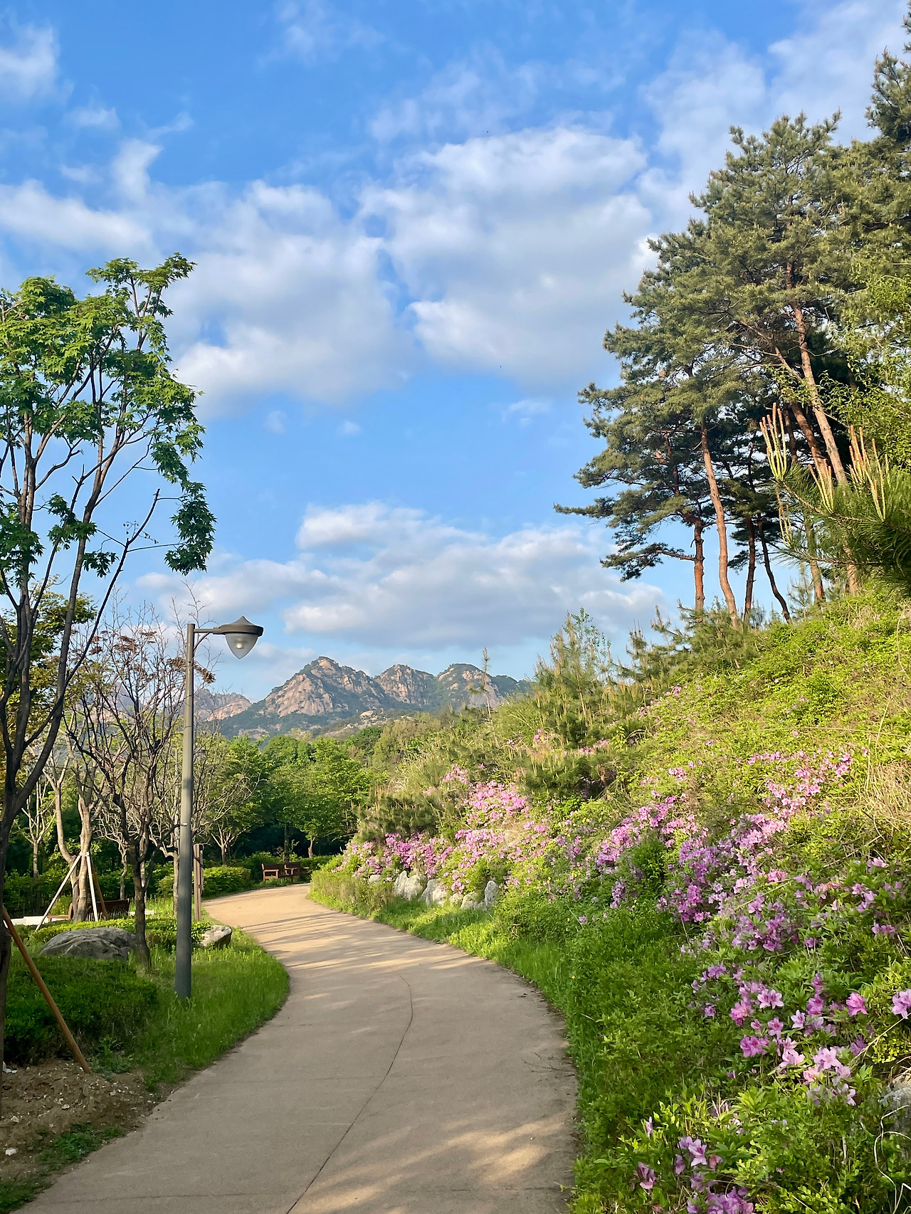그 사이 둘레길 개나리 꽃 풍경을 통채로 놓쳤다.
