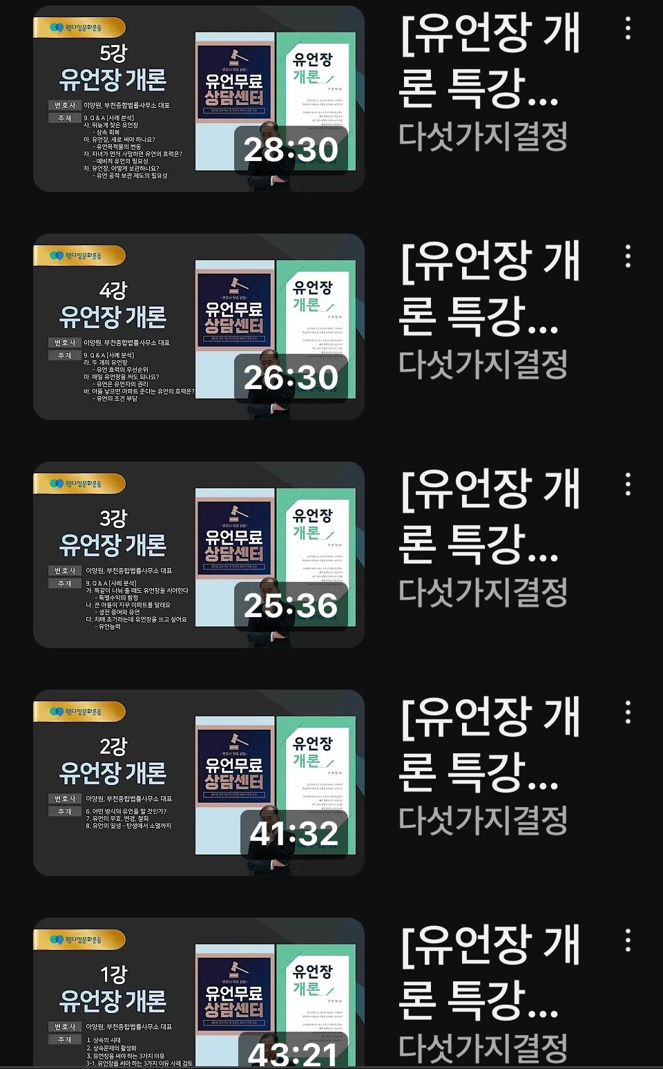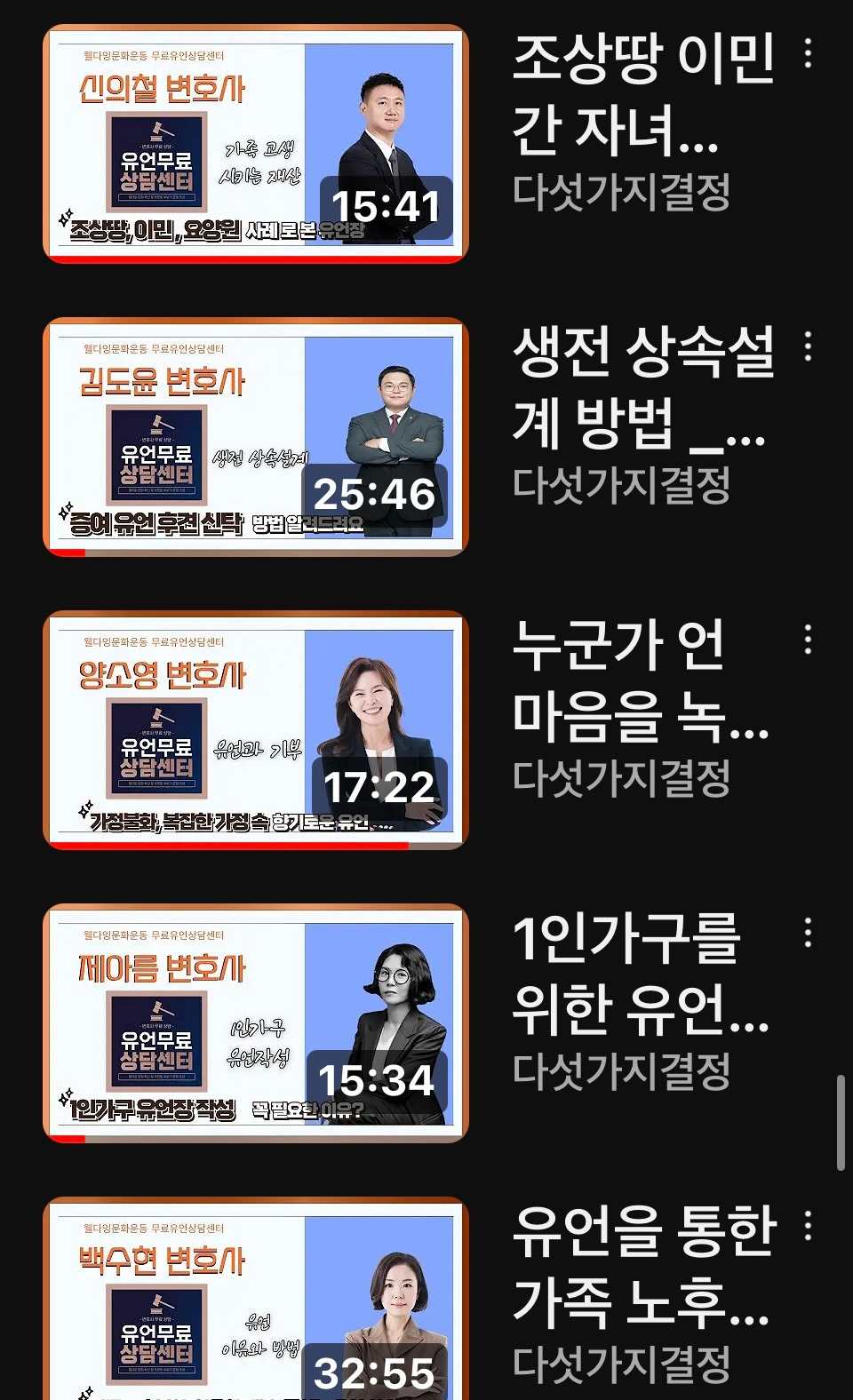 저명한 변호사 16분의 유언관련 전문 사례 및 유언장 강의, 전문가 인터뷰 등 약 90개 콘텐츠가 모여있다.