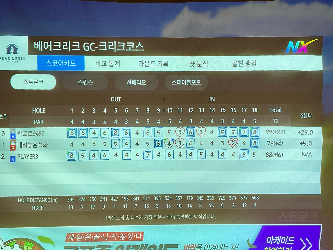 참, 거의 1년만에 한 운동이고, 크록스에 매장 장비를 가지고도 80대 타수가 나왔다. 중년의 경험과 여유에서 오는 숫자인가보다. 타수처럼 그렇게 시간도 덤덤하게 흐른다. 그렇게 잠시 어쩌면 오랫동안 멀리 떠나는 친구들과 소소한 추억을 남긴다.