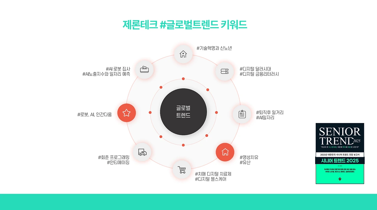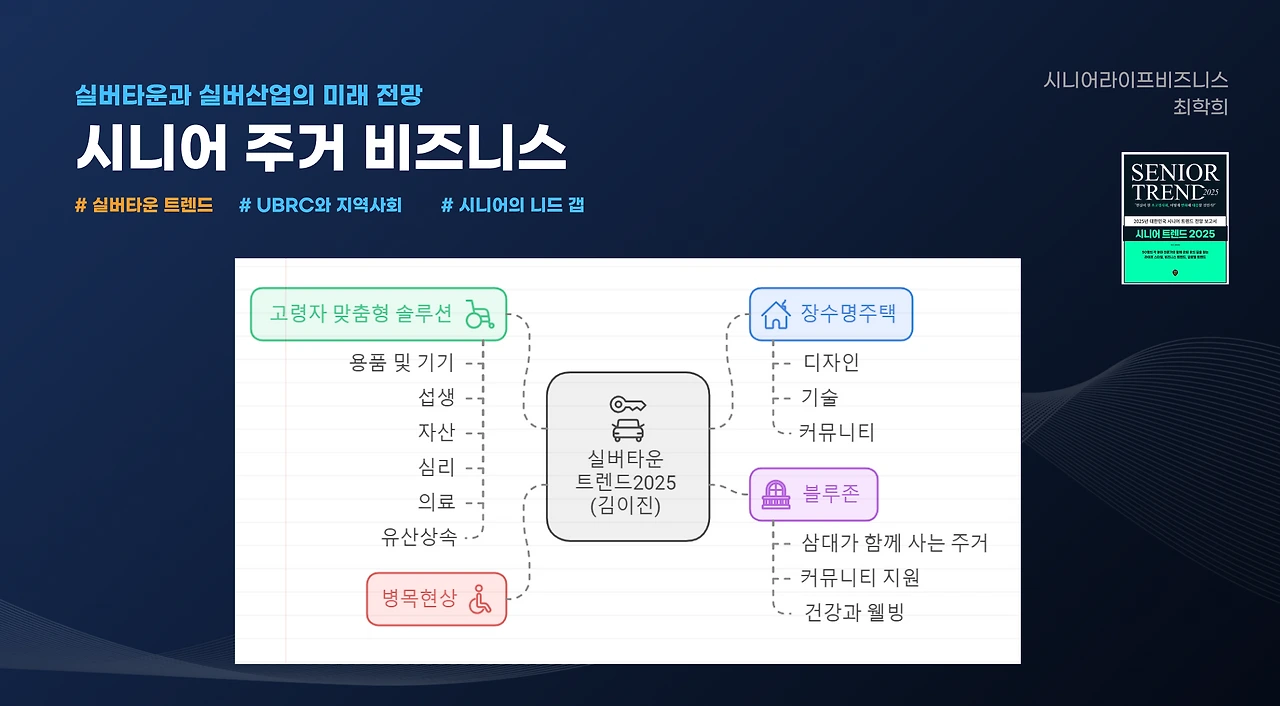 ‘시니어와 IT, 시니어와 의료, 시니어와 금융, 시니어 라이프스타일, 시니어 사업개발과 마케팅‘ 등의 발표가 ’시니어 트렌드 2025‘ 출시 이전에 잡혀있다. 다행히 각 영역은 우수기업에서 직접 담당했었던 업무영역들이다. 게다가 120개의 키워드와 50명의 기고문이 있어 준비가 수월한 편이다. 전문가의 식견을 소개하고, 당사자로서의 경험과 사례를 담는다. 특히 청중의 이야기를 듣고, 공감하고자 힘쓴다. 다행히 출판사도 적어도 2026년까지는 계속해 볼 의향이다. 척박한 현장에 매년 1백만명의 베이비붐세대가 은퇴한다. 이왕이면 더 나은 삶과 비즈니스 방향 키워드를 알리면 좋겠다.