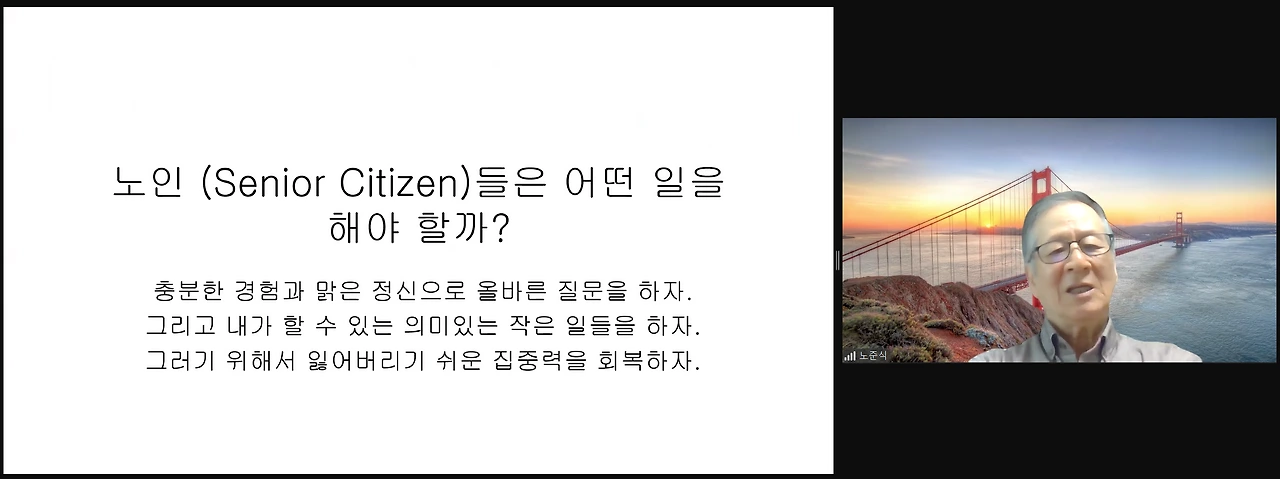 시니어라이프 정기특강에서 노준식감사께서 전하는 메시지다.
