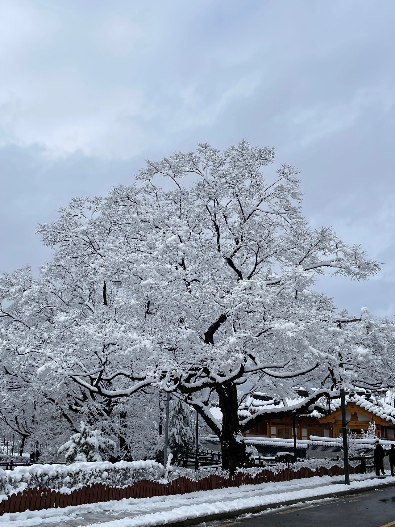 눈 풍경 놓치기 싫어 눈 뜨자마자 산책을 나갔다.