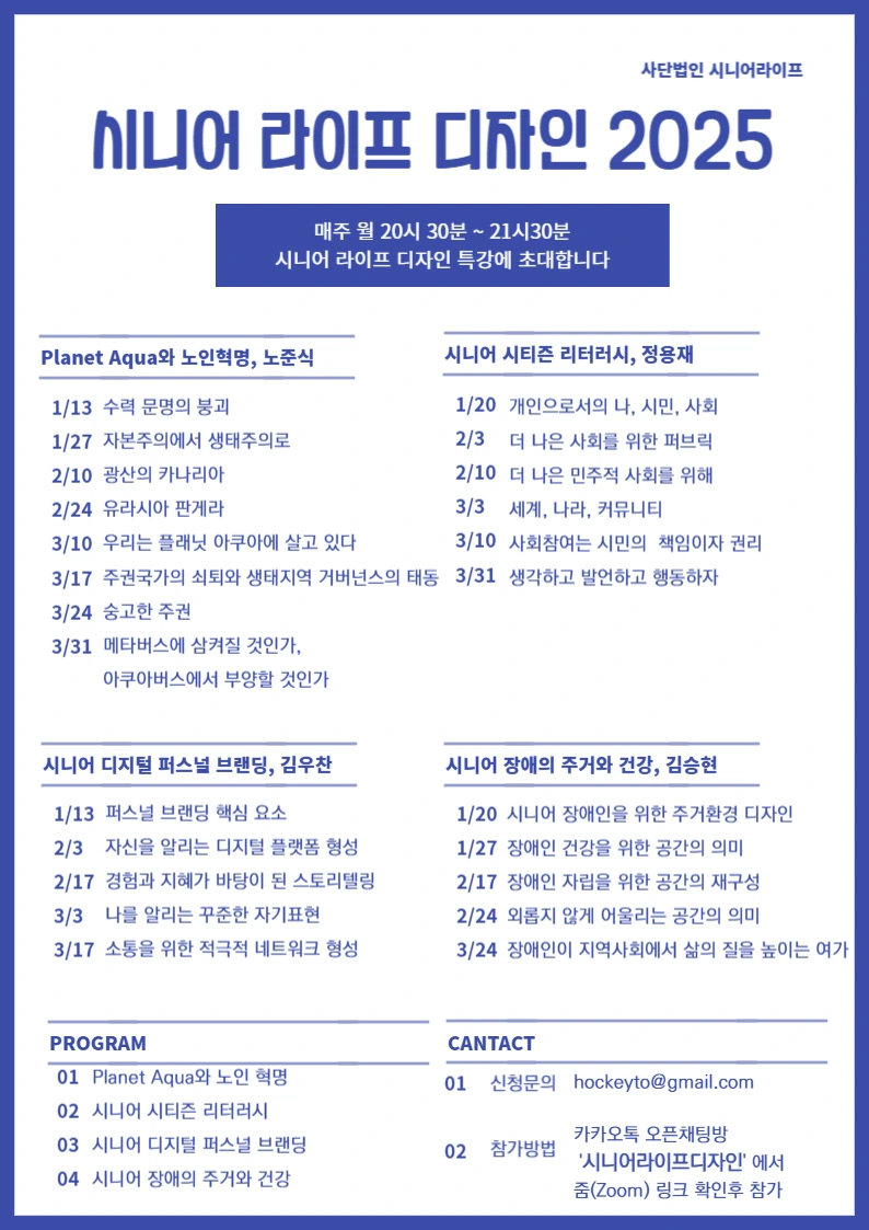 시니어라이프디자인 2025 시즌1 줌특강을 시작한다.