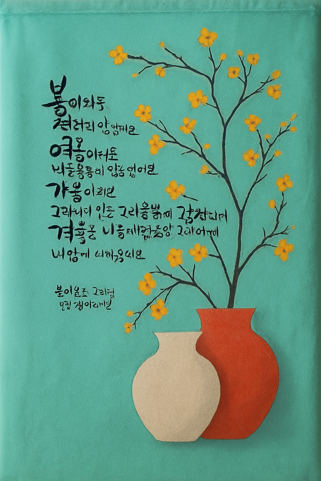 아내가 캘리그라피 작품 만들며 이것저것 물었다.