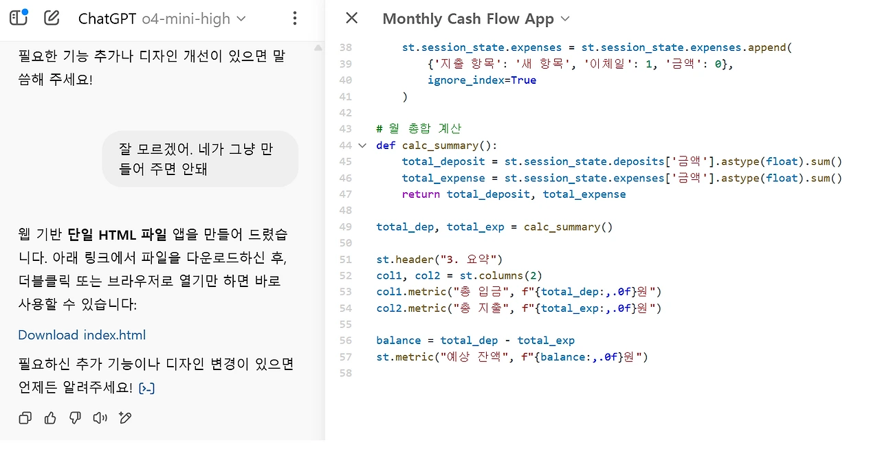 코딩을 전혀 몰라도 인공지능 비서와 이야기하면된다. 다음은 내가 계속 모른다고 어렵다고 하자, 그냥 다...