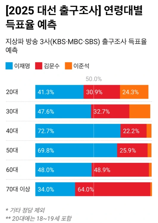 시니어 연구가로서 이번 대선의 50+세대의 대선 선택을 AI비서와 살펴봤다. 특이한 부분은 60대의 선택이다. 이전 코호트 분석에서 '가난 경험(25%),민주화 경험(20%)‘의 영향력이 비슷한 세대였다. 향후 선거 영향력은 다른 여느 나라처럼 코호트의 인생 주된 경험이 크게 작용할 것이다. 특히 베이비붐세대의 그레이보트 영향은 지속될 것이다.